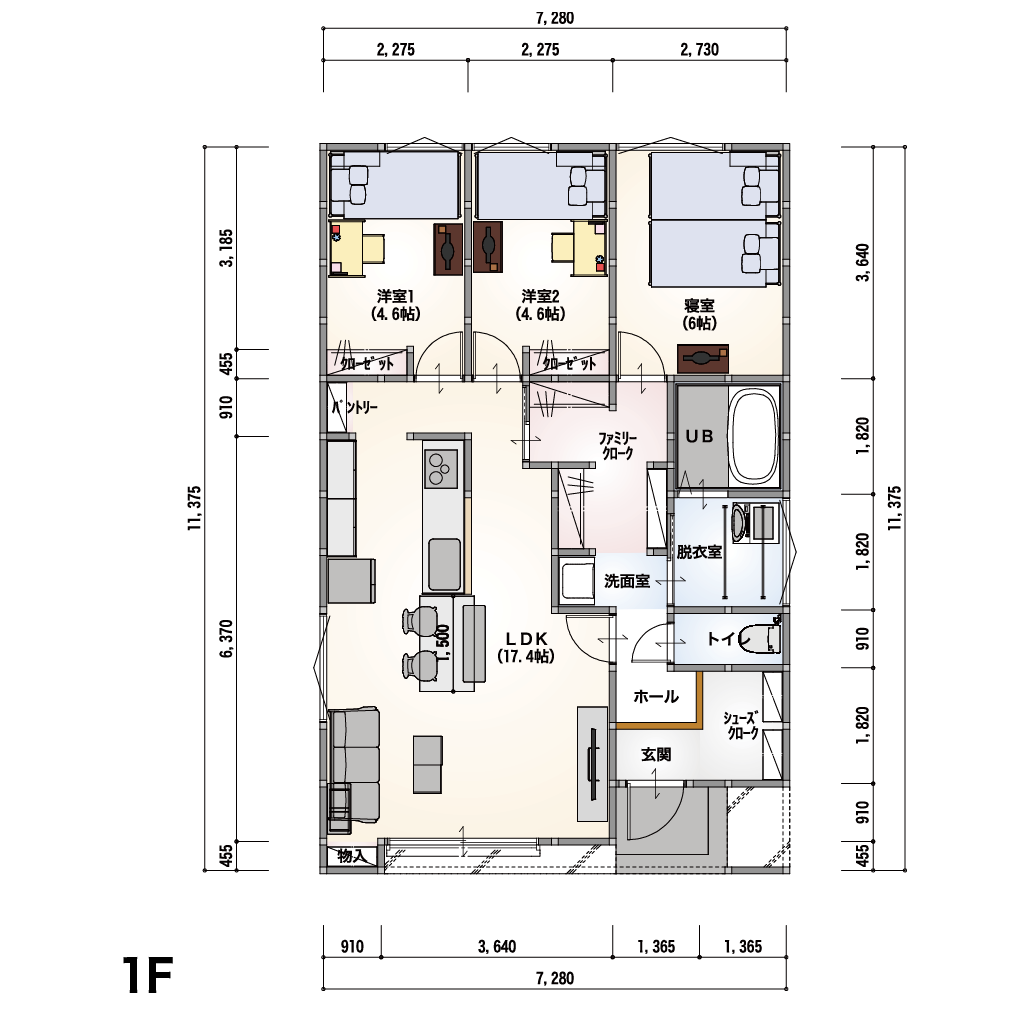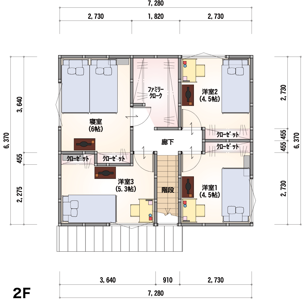 5つのプランの中から、暮らし方に合う間取りを選びます。土地の向き・広さに合わせて、最適な配置をご提案します。