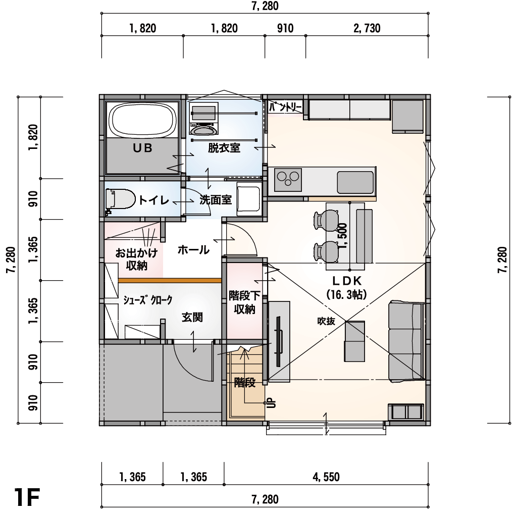 吹抜リビングで開放感を最大化。コンパクトな2階建てで、光と風が通り抜ける3LDK。